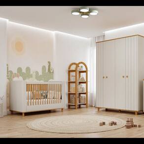 Berço cupcake 100% MDF com 2 grades fixas com Palitos de Madeira, Pés torneados de madeira, Cantos arredondados, Acabamento em pintura UV.