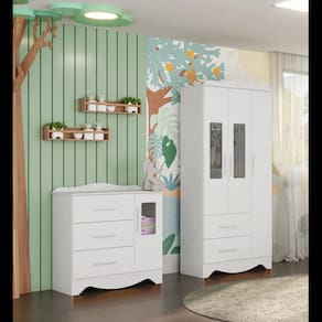 Quarto Bebe Cômoda e Guarda Roupa Moveis Peroba Clara MDF - Branco