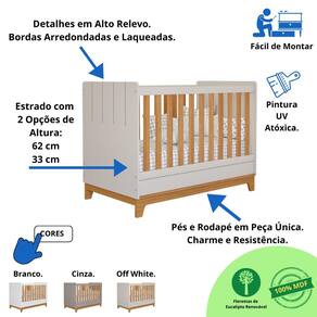 Dimensões do Berço: Altura: 99 cm X Largura: 77,6 cm X Profundidade: 133 cm;