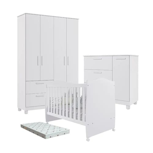 Esse modelo de berço foi desenvolvido pensando na fase bebê e na fase onde seu pequeno ou pequena já não quer mais ficar no berço. Para isso desenvolvemos um produto que pode se transformar em MINICAMA . Assim quando eles já forem maiores terão uma caminha linda e aconchegante para as noites de sono e você não precisará trocar seu móvel por um bom tempo. Nosso berço Conforto é fabricado com matéria-prima 100% MDF, um material ecologicamente correto e de ótima durabilidade e resistência. É um produto sinônimo de SEGURANÇA, pois é fabricado conforme as normas exigidas pela ABNT e certificado pelo INMETRO (Certificaçao Compulsória de segurança INMETRO).Possui 2 regulagens de altura para o estrado (uma mais alta para quando o bebê ainda é bem novinho e ainda não consegue sentar e outra mais baixa para quando o bebê já se movimenta e consegue ficar sentado). Atenção para a altura do colchão que não pode passar de 12cm. Suas 2 grades laterais são fixas para maior segurança e a régua superior e inferior são fabricadas com MDF de 2,5cm o que proporciona ainda mais segurança. Possui também 4 rodízios giratórios, sendo 2 com trava e 2 sem trava. As bordas são todas arredondadas e recebem pintura em lacca com tinta atóxica e as peças retas recebem pintura UV também com tinta e verniz atóxicos. Enviamos junto com o berço uma peça de ferro pintado (varão mosquiteiro) que encaixa nas cabeceiras e serve para colocação do cortinado, evitando assim que os pequenos sejam picados pelos mosquitos. Berço desenvolvido para uso de colchão padrão americano de 0,70x1,30m.Colchão acompanha;