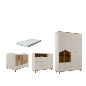 Seguindo o estilo lúdico, esse roupeiro é perfeito para quem deseja um móvel para organizar e, também, decorar. O detalhe fica por conta dos nichos laterais e as portas em formato casinha. Os puxadores e pés são torneados em madeira maciça e conferem um charme especial ao produto. Possui 4 gavetas grandes com corrediças telescópicas que proporcionam deslizamento suave, maior abertura e melhor acesso às roupas. Os nichos laterais podem ser utilizados para objetos decorativos, cestos para organização de brinquedos, livros e etc. Os espaços internos de prateleiras e maleiros são ideais para guardar desde objetos menores até objetos maiores como malas, pacotes de fraldas e caixas ou cestos de organização. Fabricado com matéria-prima 100% MDF, um material ecologicamente correto e de ótima durabilidade e resistência, esse roupeiro é excelente para quem precisa de bastante espaço para organizar tudo com muito carinho. O acabamento de pintura é feito com tinta e verniz UV atóxicos.