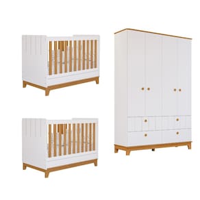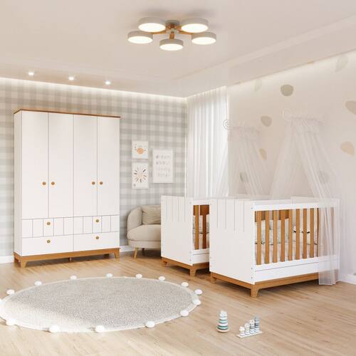 Quarto Bebê Gêmeos com 2 Berços Mini Cama e Guarda-Roupa 4 portas Liza Permobili Transforme o quarto do seu bebê em um espaço encantador com o Quarto de Bebê Gêmeos Liza, que combina elegância, funcionalidade e segurança. O conjunto inclui 2 Berços Mini Cama Liza, que garante conforto e segurança ao acompanhar o crescimento dos seus filhos. O Guarda-Roupa Liza com 4 portas, 4 gavetas espaçosas e prateleiras internas para fácil organização de roupas, acessórios e brinquedos. Crie um ambiente acolhedor, organizado e encantador para seus filhos com o Quarto de Bebê Gêmeos Liza.
