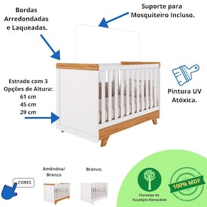 Vem com varal para mosquiteiro incluso e sua pintura é atóxica, um cuidado extra para segurança do seu bebê.