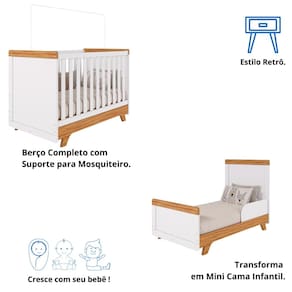 O berço Retrô é um produto versátil, 2 em 1, que vira Mini Cama.