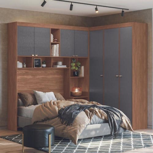 Características: Estrutura em MDP, chapa de 12mm Portas e frentes de gaveta MD 15mm Acabamento reverse, verniz fosco com relevo invertido 7 Portas 2 Gavetas 18 Nichos 2 Cabideiros em alumínio Espaço para calçados Corrediças telescópicas Espaço indicado para colchão de 1,38m Observação: Não acompanha cama nem colchão
