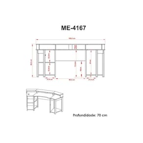 Dimensões(Cm): Comprimento(Profundidade): 70cm x Largura: 186,6cm x Altura: 89,5cm