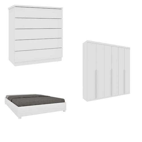 Guarda Roupa 6 Portas 218cm Milano Espresso Móveis é um produto em MDF, 6 portas com 3 dobradiças de 26cm por porta e puxadores em MDF que exibem um design moderno, com uma pega prática, tornando o ambiente ainda mais elegante, 2 cabideiros e 1 calceiro em alumínio, 4 gavetas que possuem corrediças telescópicas, fornecendo maior praticidade e segurança ao produto, possibilitando um deslizamento suave, firme e silencioso. Cama Casal Mônaco, produto em MDP, estrado de madeira reflorestada e ripas multi-laminadas, pés em PVC, dimensões para colchão 1380. Produzida inteiramente em MDF, a cômoda Premium garante durabilidade e resistência, sendo um investimento que irá acompanhar você por muitos anos. Suas 5 gavetas espaçosas, equipadas com corrediças metálicas, oferecem amplo espaço. Possui Rodízio: Não Acompanha Colchão: Não Altura do Conjunto: 217 cm Ambiente: Quarto Ambiente Principal: Quarto Cor: Neve Cor do Produto: Neve Informação Complementar: 1x Cama Casal 193cm x 144cm em MDP Mônaco Largura: 144 cm Altura: 36 cm Peso: 28,9 kg Profundidade: 193 cm Necessita Montagem: Sim
