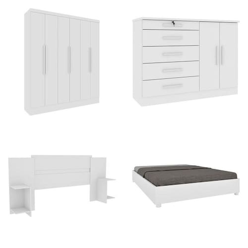 Guarda Roupa 6 Portas 4 Gavetas 180cm Munique Espresso Móveis, produto em MDP, puxadores em MDF, cabideiros em alumínio, 3 dobradiças de 26cm por porta, 4 gavetas internas com puxadores e corrediças telescópicas. Cama Casal Mônaco com Cabeceira e 2 Mesas de Cabeceiras é composto ela Cama Casal Mônaco, produzida em MDP, com estrado de madeira reflorestada e pés de PVC garante durabilidade e resistência ao móvel. Painel Box Casal Arizona que conta com um design minimalista e adapta-se ao seu ambiente, pois seu painel possui ajuste de montagem para colchões de 1,38m e 1,58m.A Cômoda 5 Gavetas Istambul Tcil Móveis é a peça ideal para quem busca elegância e funcionalidade em um único produto. Com cinco gavetas, uma com chave, com corrediças telescópica e duas porta com dobradiças metálicas. Suporta Até (kg): 30 kg Possui Rodízio: Não Acompanha Colchão: Não Altura do Conjunto: 204 cm Ambiente: Quarto Ambiente Principal: Quarto Cor: Neve Cor do Produto: Neve Informação Complementar: 1x Cômoda 5 Gavetas 2 Portas Istambul Neve Largura: 136 cm Altura: 103 cm Peso: 60,55 kg Profundidade: 46 cm Necessita Montagem: Sim