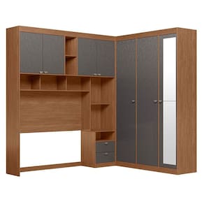 Quarto casal Lugano Jatobá Grafite com Espelho: O jogo Lugano é a solução completa para quartos que precisam de organização sem perder estilo. Roupeiro, módulos acima da cama e prateleiras laterais deixam tudo com jeitinho de casa arrumada, acabamento com textura semi-fosca e divisão pensada para facilitar seu dia a dia.