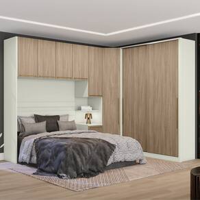 Modulado Seletto é completo e foi desenvolvido para atender as mais diversas necessidades de uso e espaço, várias possibilidades de combinações casal ou solteiro. Quarto Casal Modulado 8 portas e 6 gavetas. Estrutura em MDP de 15mm e Portas em MDF/BP de 15mm (fundo com 3mm), dobradiças metálicas 35mm com amortecimento, 6 gavetas com corrediças telescópicas, 10 prateleiras suportando 8 kg cada, puxadores de alça, cabideiros e calceiros em alumínio. Todo o conjunto com acabamento em pintura UV texturizado (fosco ou semibrilho), detalhe com aplique ripado em alto relevo na ponte, mesa de cabeceira com opção de montagem (Direita/ Esquerda). Este móvel chegará na sua casa separado em 12 volumes.