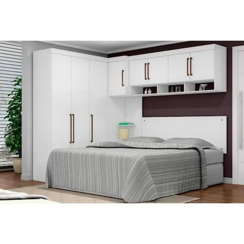 Quarto Casal Modulado Modena III 5 Peças (1 Armário Aéreo + 2 Guarda Roupas + 2 Complementos) QCM56 Branco - Demóbile