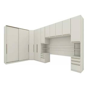 Quarto Casal Modulado Seletto 6 Peças (1 Ponte + 1 Closet Canto + 1 G Roupa 2Ptas + 1 G Roupas 2Ptas de Correr + 2 Complementos) QM124 Areia/Jequitibá - Henn