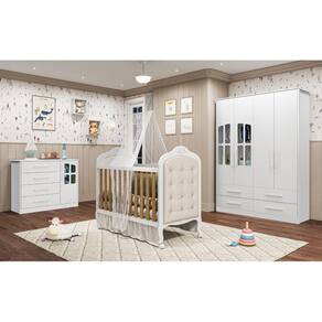 Berço padrão americano 100% MDF Bordas laqueadas Base do colchão c/ 3 opções de altura Varal para mosquiteiro incluso 04 rodízios, sendo 02 com travas