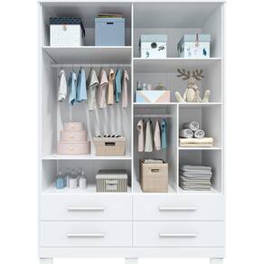 01 Guarda Roupa 04 portas Fabricado em MDF; Corrediças telescópicas; cabideiro aluminio; puxadores em MDF revestido; acabamento interno texturado linho; ótimo espaço interno;