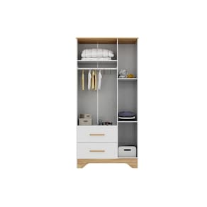 O Armário Popy 3 Portas Plus é um produto 100% MDF e possui pintura atóxica. Sua estrutura é fabricada em chapa de 12 mm, sendo seu tampo superior em chapa de 15 mm. Possui puxadores em MDF revestido com papel melamínico, cabideiro metálico e gavetas com corrediças telescópicas.