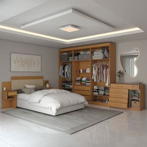 - Acompanha: 1 Guarda-Roupa, 1 Cômoda, 1 Cabeceira, Kit Ferragens e Manual de Montagem