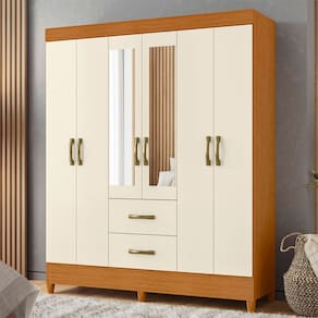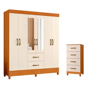 Quarto Completo Casal Guarda Roupa 6 Portas Com Espelho e Cômoda Mobi