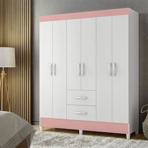 Características do Guarda Roupa: Material: MDP Acabamento: PINTURA UV Acompanha Manual de montagem: SIM Material do puxador: ABS Tipo de cabideiro: MADEIRA Número de Gavetas: 2 Tipo de Corrediça: METÁLICA Número de portas: 6 Tipo de porta: BATER Tipo de Dobradiça: METÁLICA Número de Prateleiras: 2 Quantidade de Pés: 6 Material dos pés: ABS Necessita montagem: SIM Possui Espelho: Não.