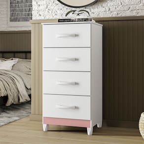 Características da Cômoda: Material: MDP Acabamento: PINTURA UV Acompanha Manual de montagem: SIM Material do puxador: ABS Número de Gavetas: 4 Tipo de Corrediça: METÁLICA Quantidade de Pés: 4 Material dos pés: ABS Necessita montagem: SIM Possui Espelho: Não.