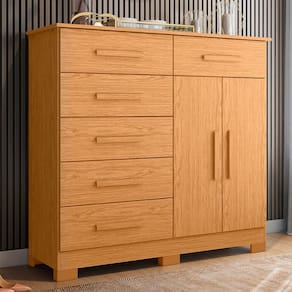 Características da Cômoda: Material: MDP Acabamento: PINTURA UV Acompanha Manual de montagem: SIM Material do puxador: MDF REVESTIDOS Número de Gavetas: 6 Tipo de Corrediça: TELESCÓPICA Número de portas: 2 Tipo de porta: BATER Tipo de Dobradiça: METÁLICA Número de Prateleiras: 1 Quantidade de Pés: 6 Material dos pés: ABS Necessita montagem: SIM Possui Espelho: Não.