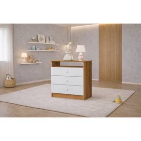 Dimensões da Cômoda Infantil 3 gavetas 1 Prateleira Ninho - MobiBaby