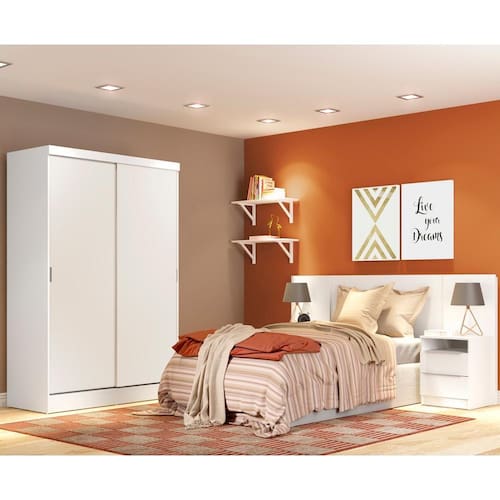 A combinação do guarda-roupa Luke e a cabeceira extensível com duas mesas laterais é o que faltava para completar seu dormitório. Um conjunto perfeito para um ambiente jovem e versátil.