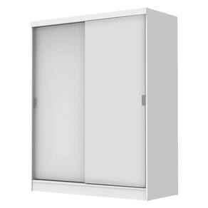 - Um (1) armário com dois (2) cabideiros, duas (2) gavetas sendo uma com tranca com chave, três (3) prateleiras e duas (2) portas de correr de madeira