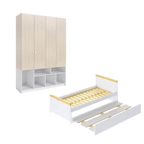 Complementando o ambiente, o Guarda-Roupa Curió traz a filosofia montessoriana para a rotina da criança. Seus inovadores nichos inferiores abertos convidam os pequenos a organizar seus próprios brinquedos e livros, estimulando a independência em cada detalhe. Equipado com puxadores em pinus, dobradiças com amortecimento e gavetas telescópicas, o móvel adapta-se ao crescimento do seu filho com prateleiras reguláveis e um design moderno e acolhedor. Este kit é um verdadeiro convite ao aprendizado lúdico, onde a funcionalidade robusta encontra a leveza estética para nutrir o desenvolvimento integral em um espaço de sonhos e total liberdade. Possui Portas: Sim Altura do Conjunto: 230 cm Ambiente: null Ambiente Principal: Quarto Infantil Cor: Branco/Mel Informação Complementar: 1x Cama Auxiliar Petit MadeiraOriginals Branco/Mel Largura: 188 cm Altura: 29 cm Peso: 23,9 kg Profundidade: 92 cm Necessita Montagem: Sim