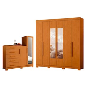 Quarto Completo Guarda Roupa 6 Portas Com espelho Vinci e Cômoda Sapateira New Master