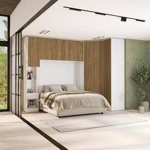 Com nichos de tamanhos diferentes, você poderá guardar calçados e roupas dobradas. Os cabideiros, metálicos e de suporte interno, são perfeitos para organizar peças maiores, como casacos e vestidos sem amassar. Já as gavetas, com corrediças telescópicas, são perfeitas para acessórios e peças menores, deixando seu espaço sempre organizado. Além disso, os aéreos otimizam espaço na vertical, enquanto o painel garante o acabamento de um quarto planejado.