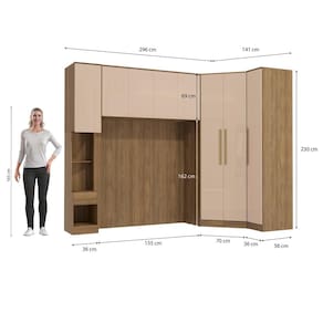 Para quem sempre sonhou com um quarto planejado, o Modulado Adapt da Kappesberg é a escolha certa. Produzido em MDP de 15mm, o que proporciona mais firmeza, robustez e qualidade, o Combo CB1436 é ideal para quem busca otimizar espaço e garantir beleza e funcionalidade no dia a dia. Com 2,30m de altura, 4,87m de largura e 56cm de profundidade, o combo traz soluções funcinais e muito espaço interno, além do guarda-roupa de canto obliquo, que permite composições modernas um aproveitamento perfeito.