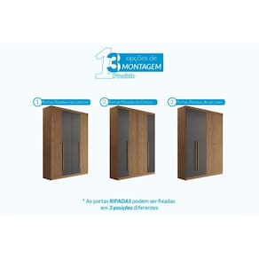 GUARDA ROUPA SOLTEIRO 4 PORTAS (2 RIPADAS E 2 C/ ESPELHO) E 2 GAVETAS BURITI JATOBÁ/GRAFITE - SANTOS ANDIRÁ