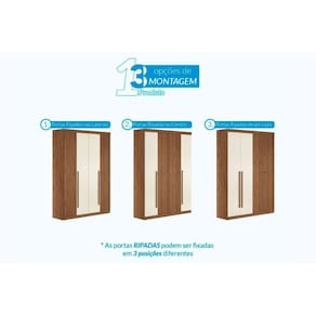Dimensões(Cm): Guarda Roupa Solteiro 4 Portas (2 Ripadas e 2 c/ Espelho) e 2 Gavetas Buriti