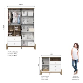 Dimensões do Guarda Roupa: Altura: 200,5 cm Largura: 142 cm Profundidade: 40 cm Peso: 69,00 kg