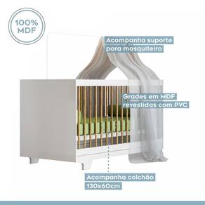 Quarto de Bebê 100% MDF Berço Minicama com Colchão e Cômoda Flocos Branco. Quer deixar o quarto do seu bebê mais confortável e atraente? Então você vai se apaixonar por este dormitório Flocos. Composto por móveis selecionados por serem de alta qualidade e resistência, ele é ideal para deixar o quarto irresistível e organizado. Demais, né? Aproveite. Informações Complementares: Berço minicama MDF com grades em madeira, sistema de fixação por buchas, 3 níveis de altura de estrado, sapatilhas de proteção contra umidade. Acompanha Kit para transformação em minicama e suporte mosquiteiro. Cômoda/Fraldário/Trocador com 1 porta e 3 pr Ean: 7908506284012