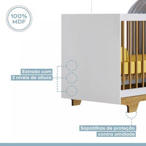 Quarto de Bebê 100% MDF com Berço Minicama e Cômoda Flocos Branco/Ypê. Quer deixar o quarto do seu bebê mais confortável e atraente? Então você vai se apaixonar por este dormitório Flocos. Composto por móveis selecionados por serem de alta qualidade e resistência, ele é ideal para deixar o quarto irresistível e organizado. Demais, né? Aproveite. Informações Complementares: Berço minicama MDF com grades em madeira, sistema de fixação por buchas, 3 níveis de altura de estrado, sapatilhas de proteção contra umidade. Colchão não fornecido. Acompanha Kit para transformação em minicama e suporte mosquiteiro. Cômoda/Fraldário/Troc