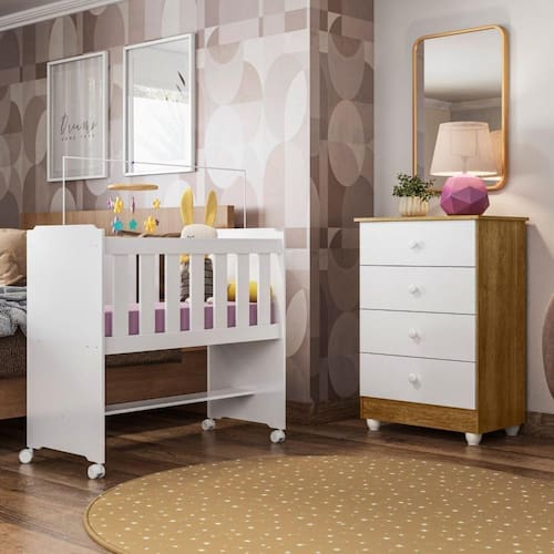 Quarto de Bebê 100% MDF Com Mini Berço e Cômoda Soft Life Branco/Madeirado Ypê. Quer deixar o quarto do seu bebê mais confortável e atraente? Então você vai se apaixonar por este dormitório Tigus. Composto por móveis selecionados por serem de alta qualidade e resistência, ele é ideal para deixar o quarto irresistível e organizado. Demais, né? Aproveite! Ean: 7908439682237