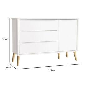 Cômoda Infantil Theo 1 Porta Branco com Pés Madeira Natural Reller