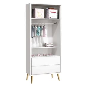 Guarda Roupa Infantil Theo 2 Portas Branco com Pés Madeira Natural Reller