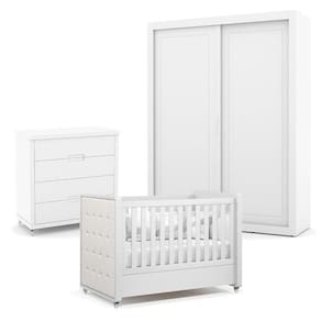 Quarto de Bebe 2 Portas Tutto New com Capitonê New Boucle e Gaveteiro Branco Acetinado - Matic
