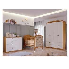 A Cômoda possui 04 gavetas com corrediças metálicas que permite um deslize mais seguro e suave e 1 porta, amplo espaço para acomodar as roupas e objetos do bebê. Produzido em MDF e pintura UV, que protege o móvel e assegura sua qualidade e resistência. Compacta, pode ser utilizada tanto em ambientes pequenos quanto em amplos.