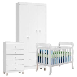 Mamãe e Papai estão a procura de Móveis para o quartinho do Bebê? Aqui você encontra qualidade e bom preço! Apresentamos o Quarto de Bebê 03 Portas com Gaveteiro Ternura Baby e Berço Lila na cor Branco Brilho, desenvolvidos pela Incorplac e Carolina, contam com um lindo design, ótimas repartições, amplo espaço interno para melhor organização das roupinhas, sapatinhos e acessórios do seu Bebê. Confira as características e aproveite!