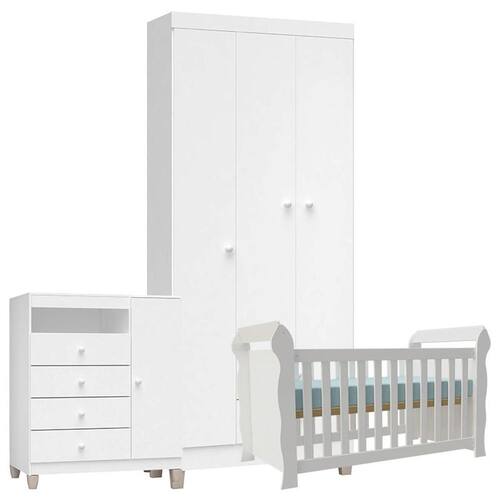 Quarto de Bebê 3 Portas Ternura Baby com Berço Lara Branco Brilho - Incorplac
