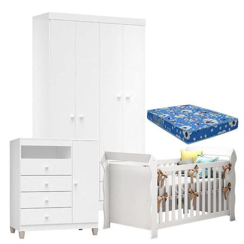 Mamãe e Papai estão a procura de Móveis para o quartinho do Bebê? Aqui você encontra qualidade e bom preço! Apresentamos o Quarto de Bebê 04 Portas Ternura Baby com Berço Lara com Colchão na cor Branco Brilho desenvolvidos com materiais de ótima qualidade., contam com um lindo design, ótimas repartições, amplo espaço interno para melhor organização das roupinhas, sapatinhos e acessórios do seu Bebê.Confira as características e aproveite!