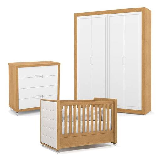 Quarto de Bebe 4 Portas Tutto New com Capitonê New Boucle e Gaveteiro Freijó - Matic