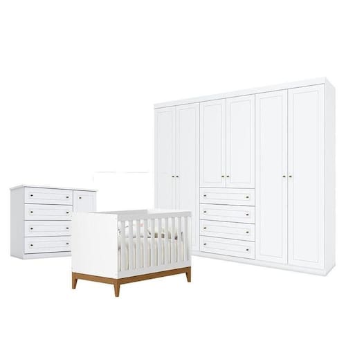 Quarto de Bebê Americano 6 Portas com Berço Americano Flip Branco Acetinado Reller - Henn