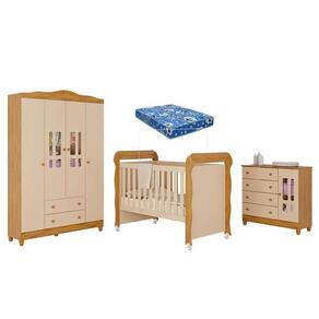 Quarto de Bebê Ariel 4 Portas com Berço Americano Mirelle Off White Bétula com Colchão Ortobom Carolina Baby