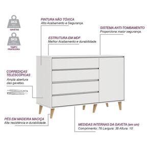MEDIDAS DA CÔMODA MONTADA (CxLxA) cm: 135 x 50 x 90