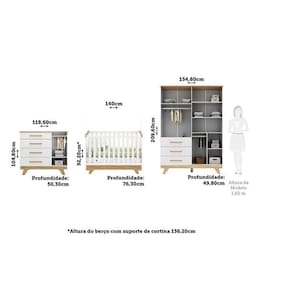 Quarto de Bebê Berço Capitonê Guarda-roupa e Cômoda com Janelas 100% Mdf Retrô Kakau Espresso Móveis Branco Brilho/Amêndoa/Branco. Inspirado no estilo retrô do passado com um toque de modernidade a linha Kakau é encantadora. O berço é certificado pelo INMETRO no registro 000781/2018, tem a opção de ser utilizado como mini cama, acompanha um suporte para mosquiteiro e a base do colchão é regulável em 3 opções de altura, aumentando o conforto no uso diário e na segurança com o crescimento do seu pequeno(a). São móveis com acabamento em pintura UV atóxica e com a qualidade de ser produzido em 100% MDF. As gavetas possuem corrediças telescópicas e suportam até 4kg cada. Tudo para oferecer um quartinho aconchegante, pratico e lindo para o seu bebê. Medidas dos produtos (cm): Berço: 92,20 x 135,50 x 76,30 (AxLxP) Cômoda: 104,80 x 118,60 x 50 (AxLxP) Guarda Roupa: 209,60 x 154,80 x 49,80 (AxLxP)
