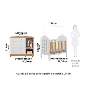 1x Cômoda de Bebê 120,30cm 1 Porta com Janela e 4 Gavetas 100% Mdf Maya Provençal Branco Brilho/Amêndoa Largura: 120,3 cm Altura: 113 cm Peso: 48,1 kg Profundidade: 50,3 cm Necessita Montagem: Sim